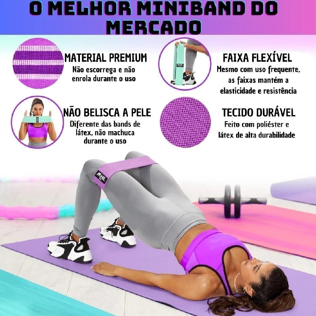 🏋️♀️ Kit com 3 Bandas Elásticas de Exercício – Treino em Casa com Resistência para Glúteos