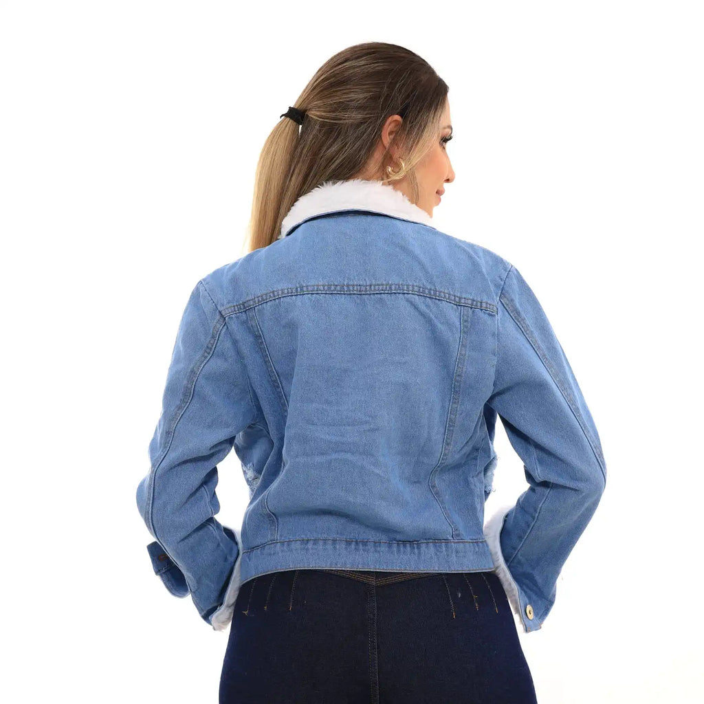 Aposte na tendĂȘncia que une o charme do jeans com o conforto da pelĂșcia! Esta jaqueta jeans cropped com pelinhos Ă© a escolha perfeita para quem quer se manter aquecida sem abrir mĂŁo do estilo.